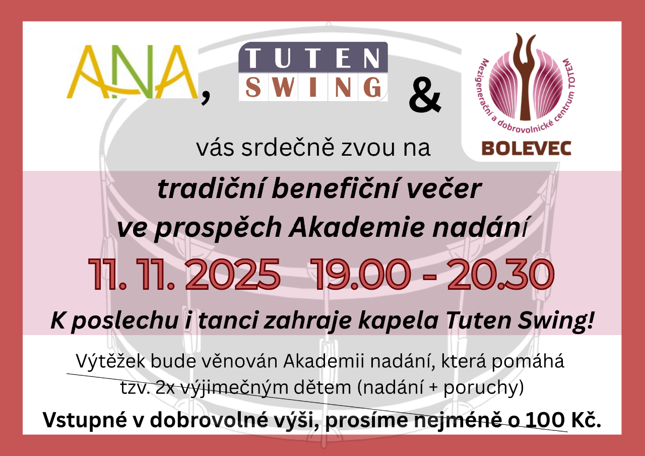 11.11.2025 19:00Srdečně zveme všechny na benefiční vystoupení kapely Tuten Swing.