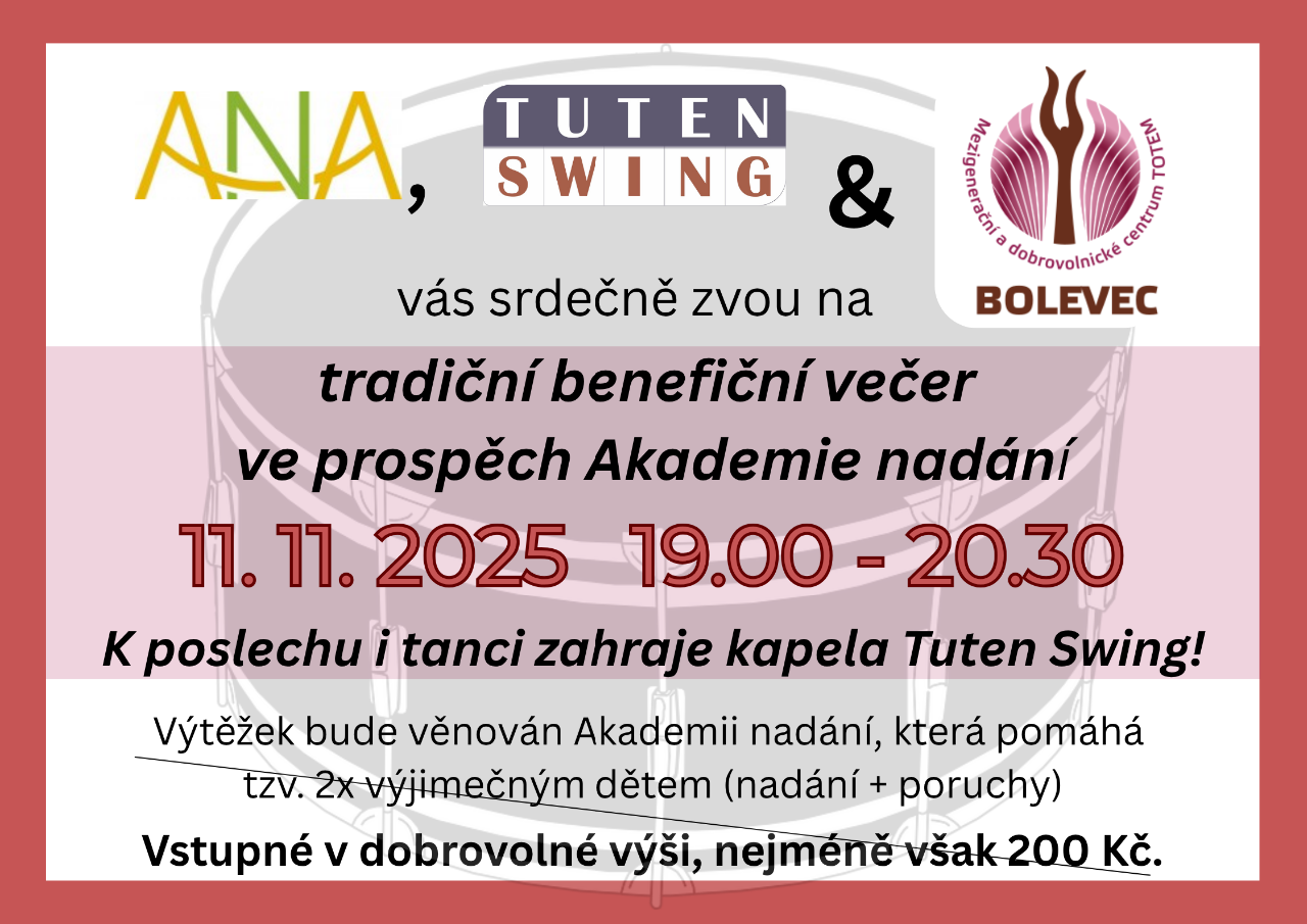 11.11.2025 19:00Zveme všechny na benefiční vystoupení kapely Tuten Swing.