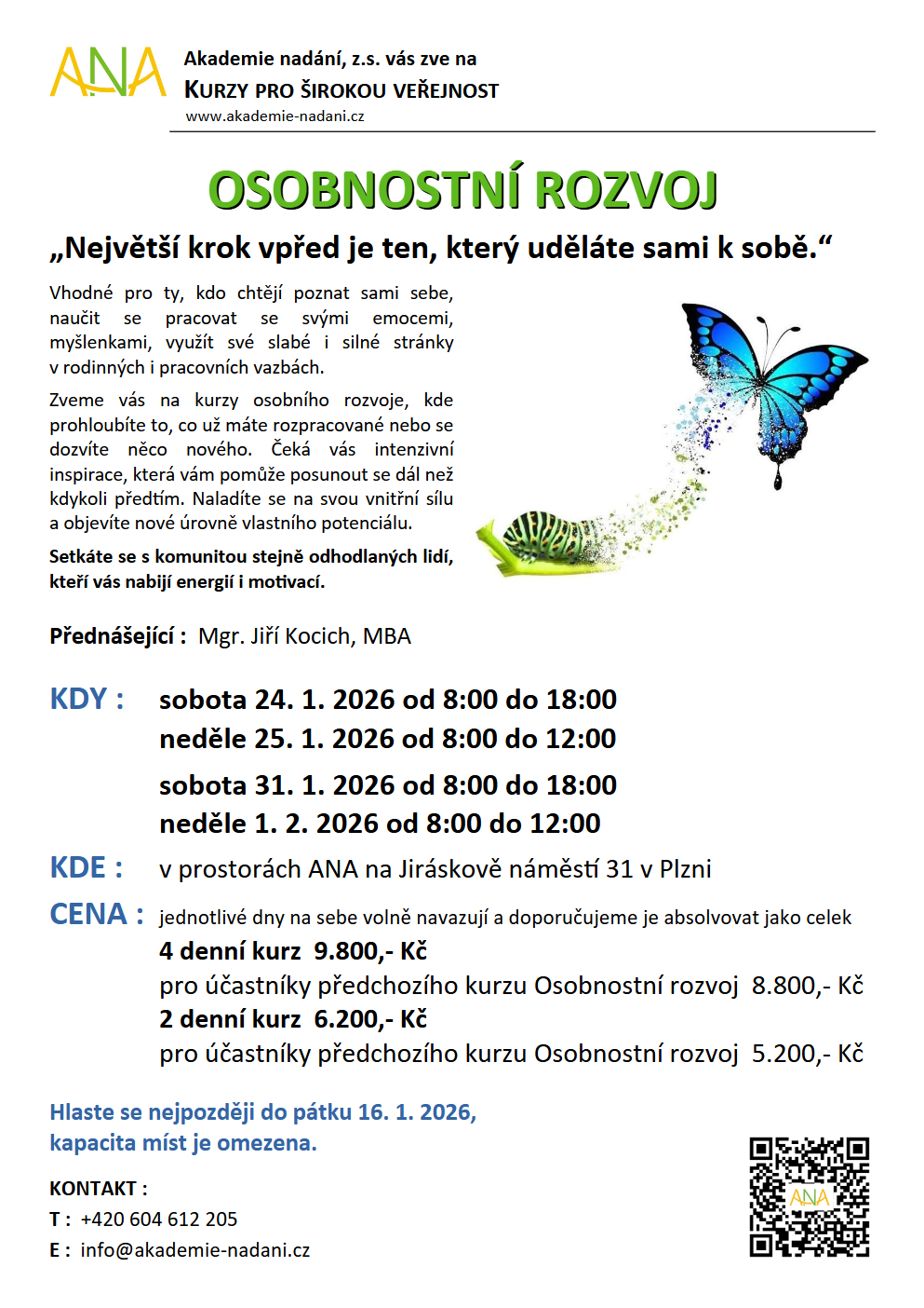 pro účastníky předchozího kurzu "Osobnostní rozvoj" 5.200,- Kč