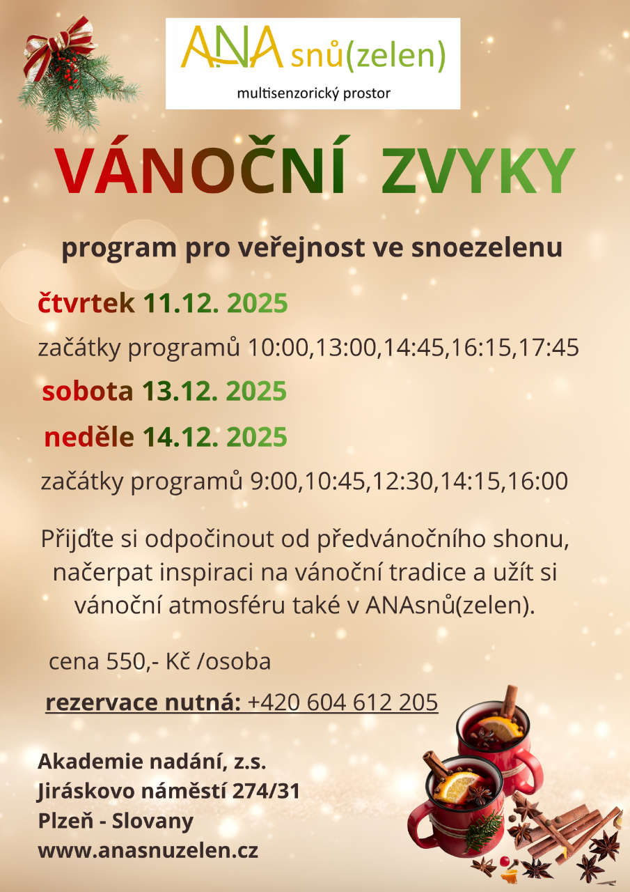 Přijďte si odpočinout od předvánočního shonu, načerpat inspiraci a užít si vánoční tradice v multisenzorickém prostoru ANAsnů(zelen).